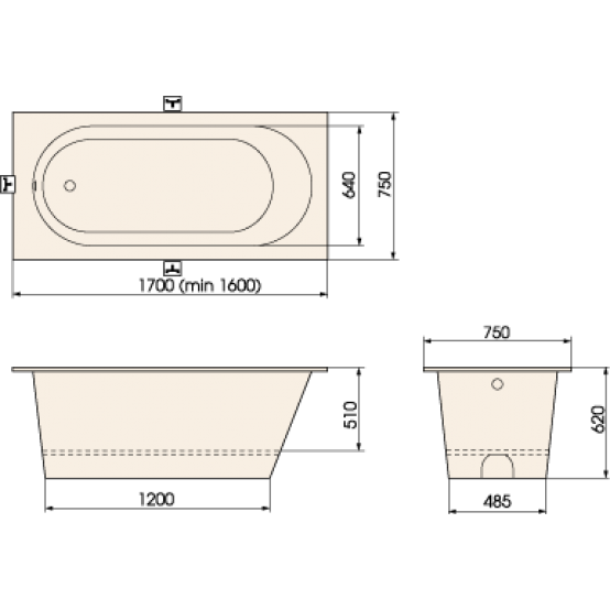 PAA akmens masas vanna VARIO 160*75 (balta)