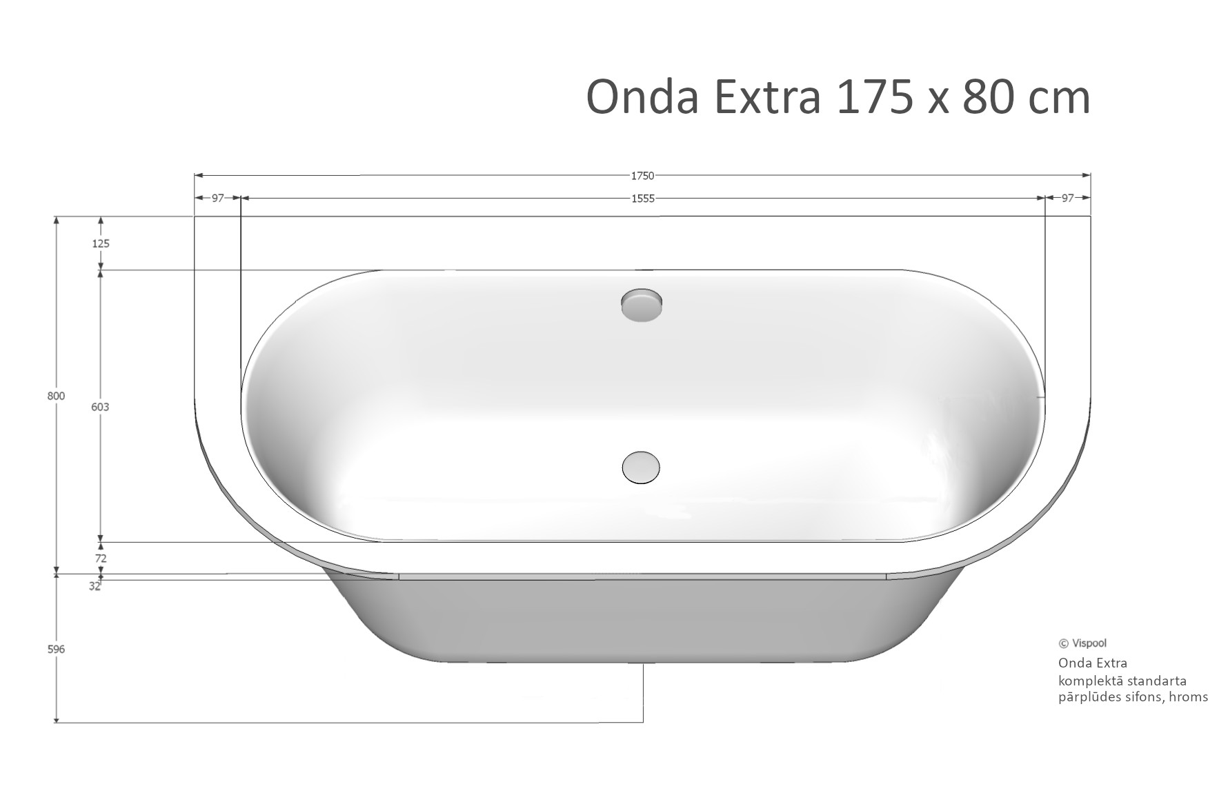 Vanna ONDA 175x80cm balta bez paneļa+sifons