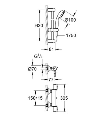 GROHE Termostats dušas Grohtherm 1000+ ar duš.kompl., hroms