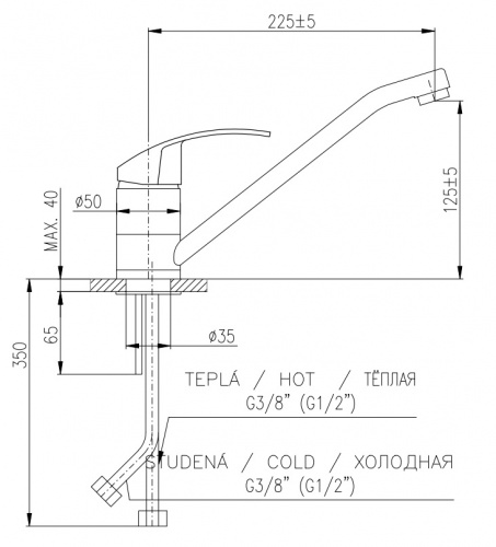 RAV MISISIPI virtuves maisītāji grozāms, 225mm, hromēts