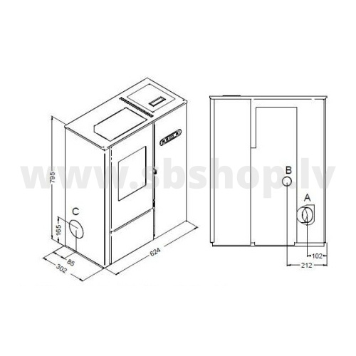 *Granulu patēriņš: max 1,6 kg/h – min 0,7 kg/h