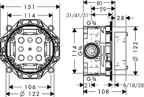 HANSGROHE iebūvējamā daļa IBOX 3/4