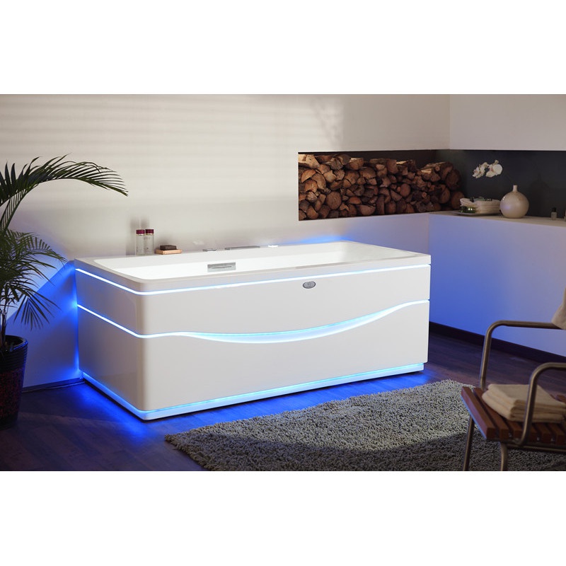 Zils LED apgaismojums iebūvēts vannas panelī