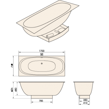 • PAA akmens masas vanna VERSO ar dekoratīvo paneli 170*75cm (balta)