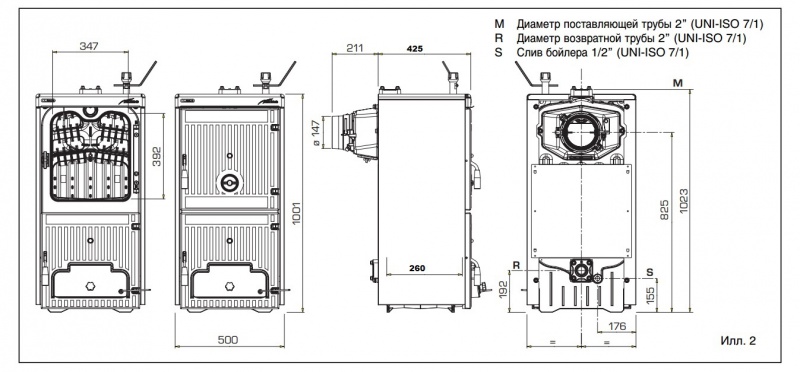 *lielas apkures katla kurināmā iekraušanai durvis;