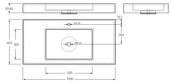 Izlietne F-1000 1000x450 balta