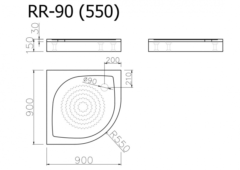 Akmens masas paliktnis RR-90*90 (550) ar paneli un sifonu