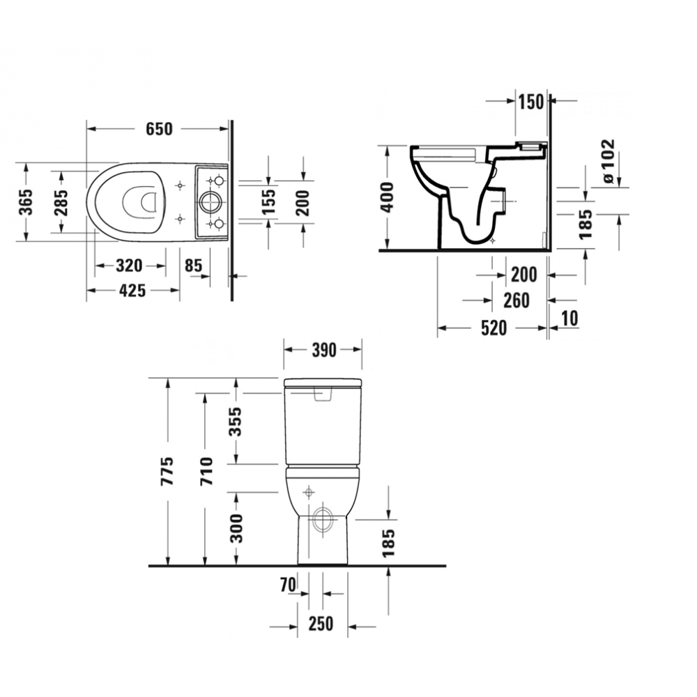 Pods DURAVIT ar SC vāku un skalojamo kasti No.1 Rimless, universāls izvads, pievads no apakšas, balts